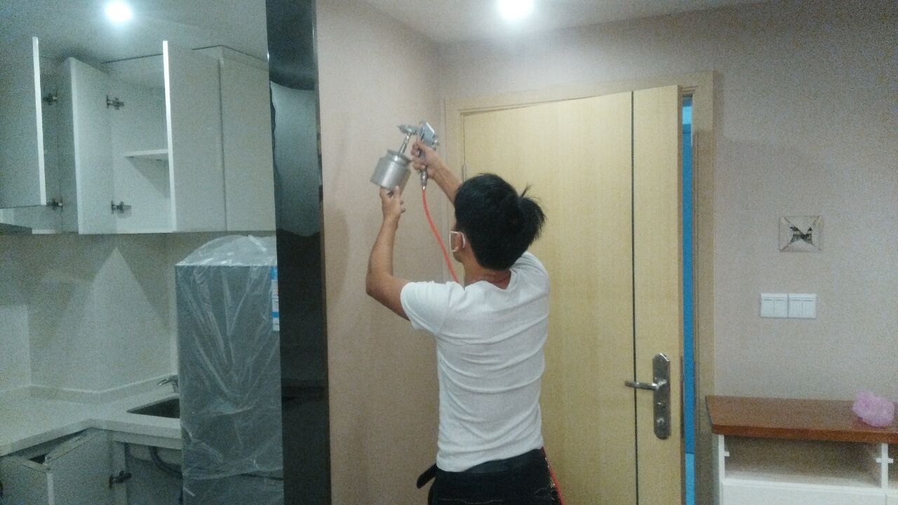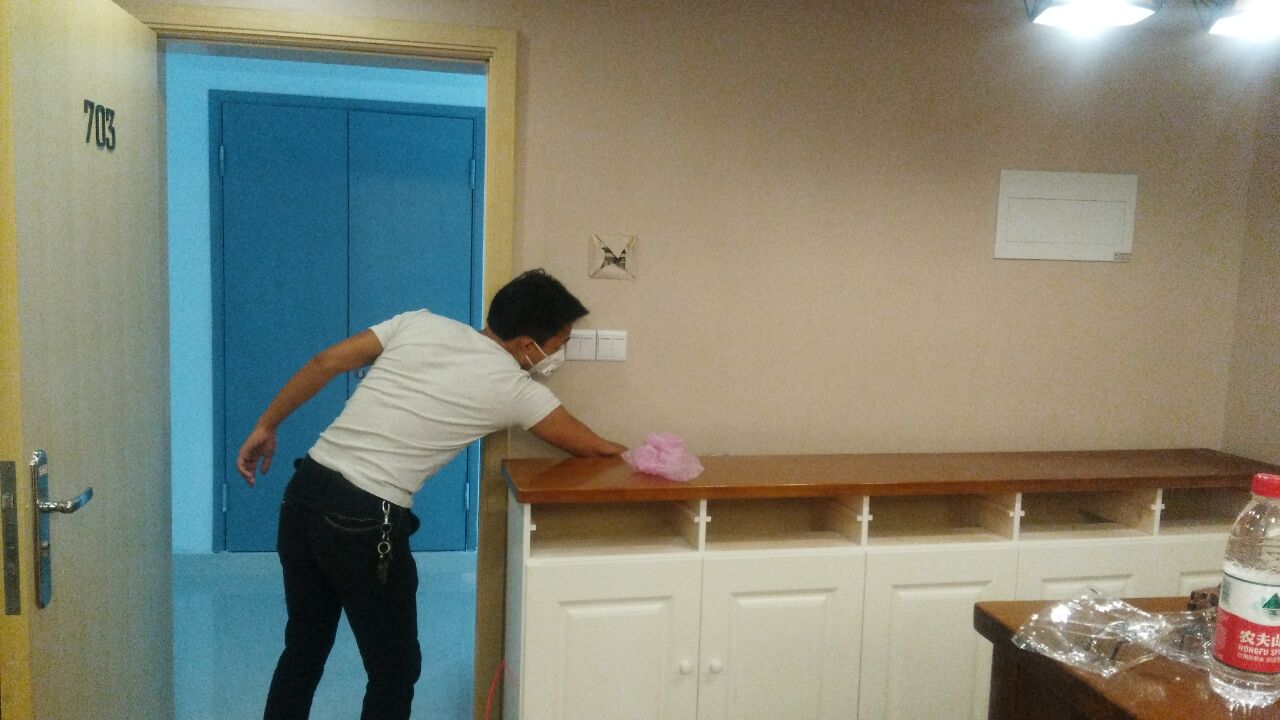 治理方案及施工:公司針對其房屋結構特點及污染情況,我公司技術及施工人員采用專項治理的施工方案,針對其墻體立面(墻紙)、沙發、櫥柜等污染源表面使用我公司自主研發的利純納米光觸媒進行甲醛清除,采用高壓霧化噴涂的方法,最大限度消除室內的甲醛污染,對于重新刷漆的家具、門、書架、衣柜等采用甲醛清除劑進行處理,對于床底部位則使用生物酶異味清除劑,針對不同污染物,做全面治理,治理后的室內環境達到國家規定的室內空氣質量指標范圍內,業主對我公司的治理給予充分肯定。下面為施工現場照片: