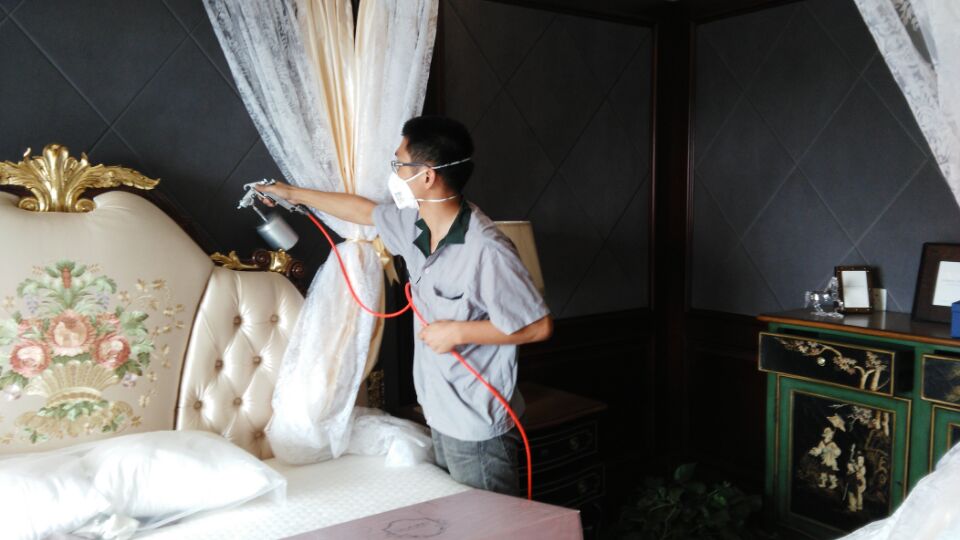 治理方案及施工:針對其房屋結(jié)構(gòu)特點、污染情況,我公司技術(shù)及施工人員采用了非常精密的施工方案,針對其墻面、床墊、沙發(fā)、窗簾、布藝家具使用我公司研發(fā)的利純光觸媒進(jìn)行甲醛清除,這些地方光照量較充足,便于光觸媒對甲醛的分解,且光觸媒性溫和,不會對這些產(chǎn)品造成危害,對于刷漆的家具、書桌、衣柜、木門等采用甲醛清除劑進(jìn)行處理,甲醛清除劑是我公司針對家具中甲醛特別研發(fā)的產(chǎn)品,對家具中甲醛、苯、等產(chǎn)品效果良好,甲醛對兒童、老人的危害最為嚴(yán)重,老人因為抵抗力差,而兒童卻是因為身體防御系統(tǒng)不夠健全,且呼吸頻率比成人高,所以我們針對兒童房做了重點處理,對業(yè)主家的兒童房做重點處理,針對不同污染物,做分別處理。為業(yè)主清理甲醛,還業(yè)主一個安全,健康的生活環(huán)境是我們?nèi)w工作的責(zé)任,下面為施工現(xiàn)場照片: